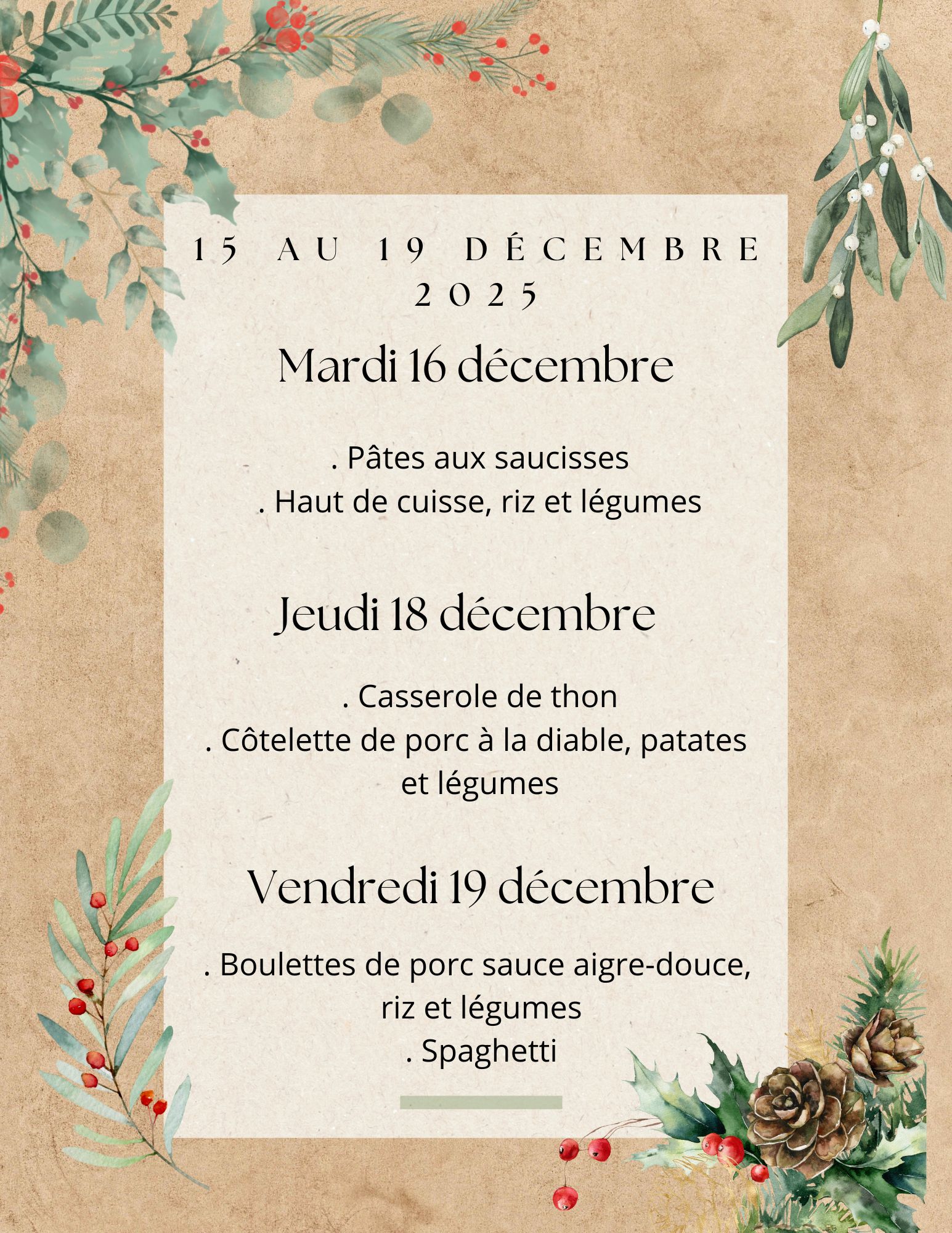 Menu de la semaine